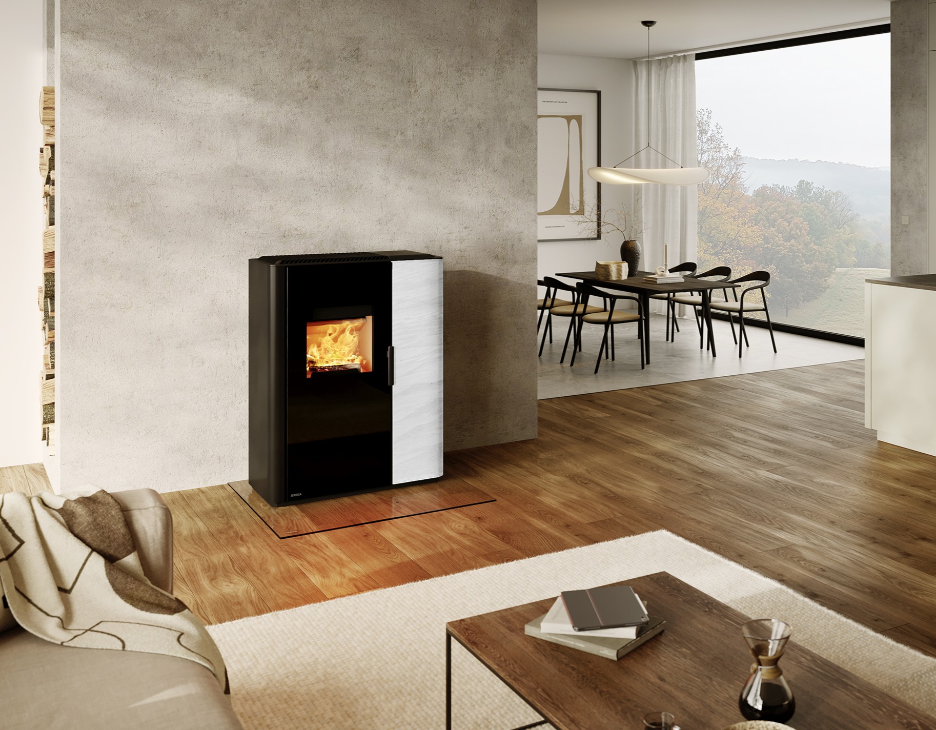 Poêle hybride, fonctionnement en granules ou au bois avec de très bons rendements